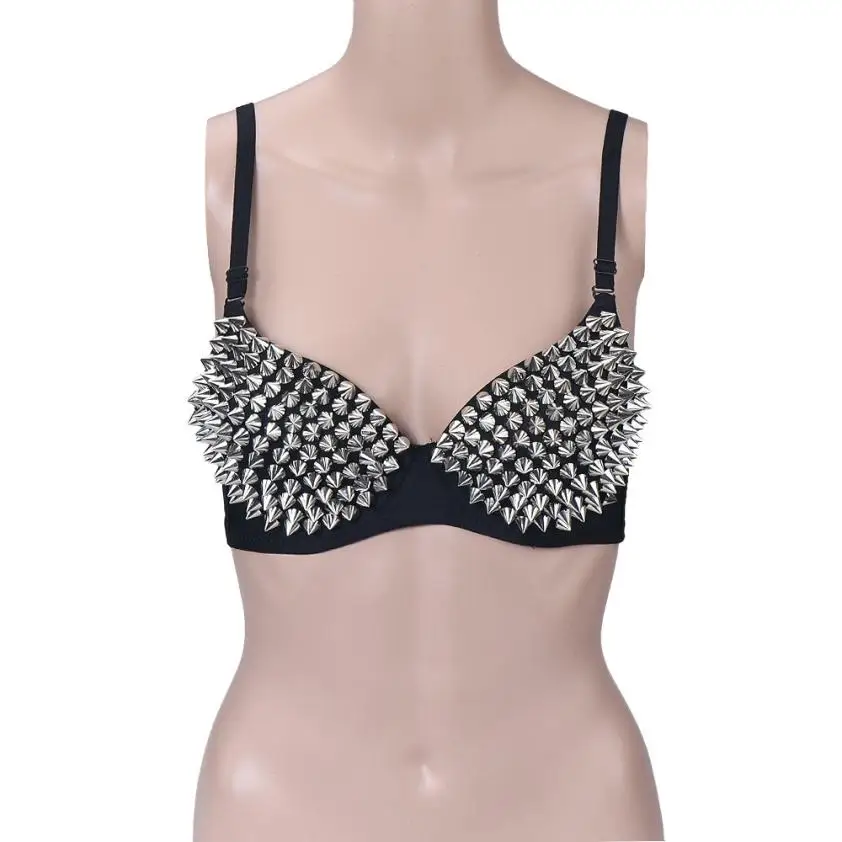 - Rock Gaga Goth Punk Rhinestones Sequins Chains Deco Push-up Bra Clubwear Stripper